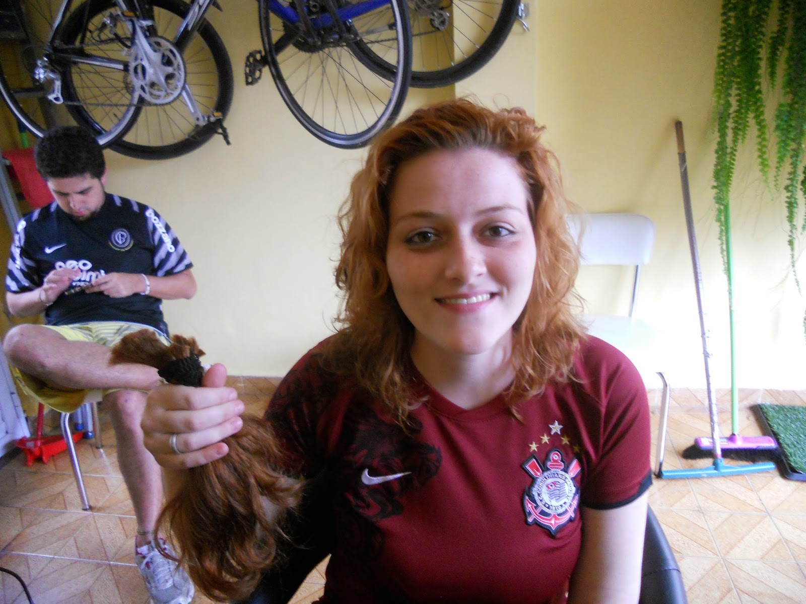 Logo após o corte ela me disse que parecia ter perdido uns dez quilos devido a quantidade de cabelo que tiramos. Os fios desconectados ressuscitaram suas ondas naturais, e uma franja na altura dos olhos levantou sua espressão.